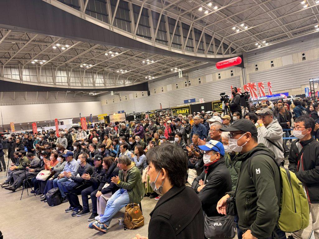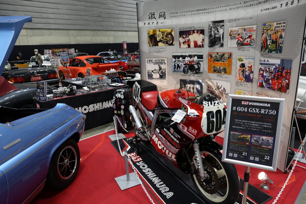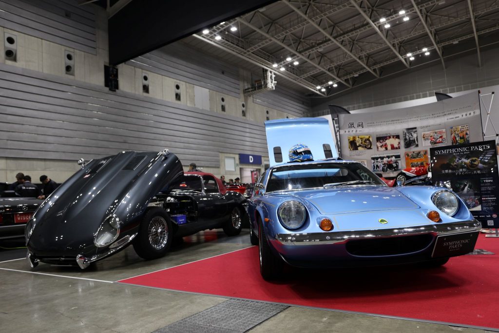 「SYMPHONIC PARTS×ヨシムラジャパン」ブースには今日も辻本さんがいらっしゃいます。ヨシムラTMR-MJN 4輪用キャブレターを搭載したジャガーE-TYPE、ロータスヨーロッパとともにお待ちしております!