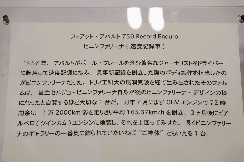 セルジョ・ピニンファリーナが1950年代に手掛けた「フィアット・アバルト 750 Record Enduro」は垂涎の1台。